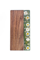 Medium Walnut Charcuterie Board Green Base with White Flowers