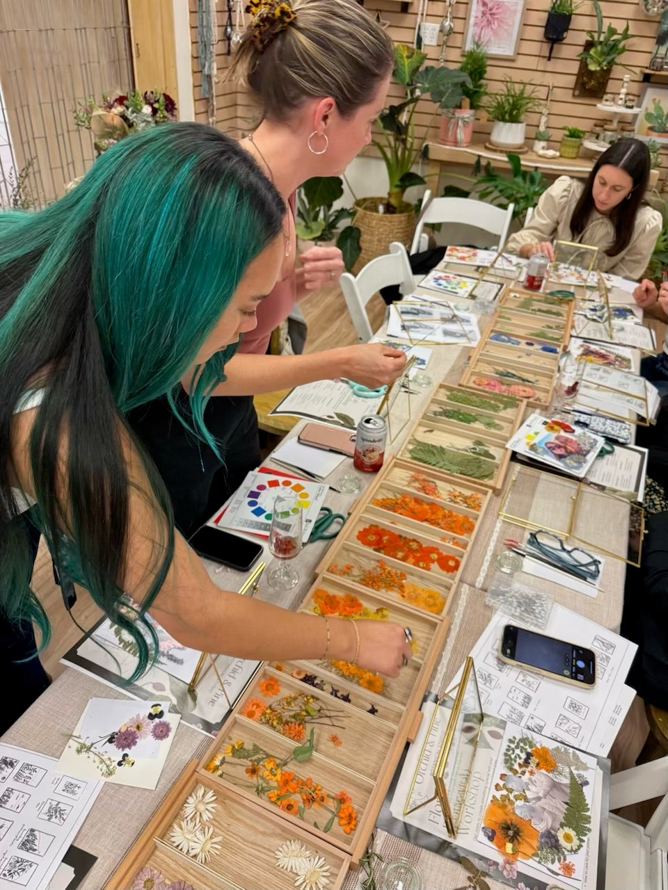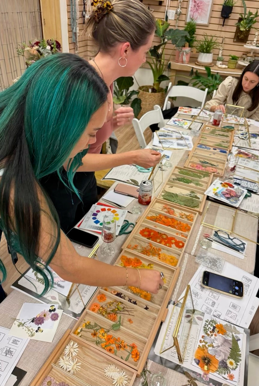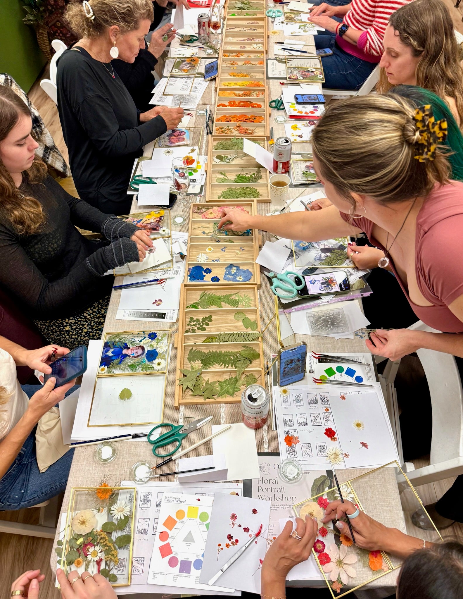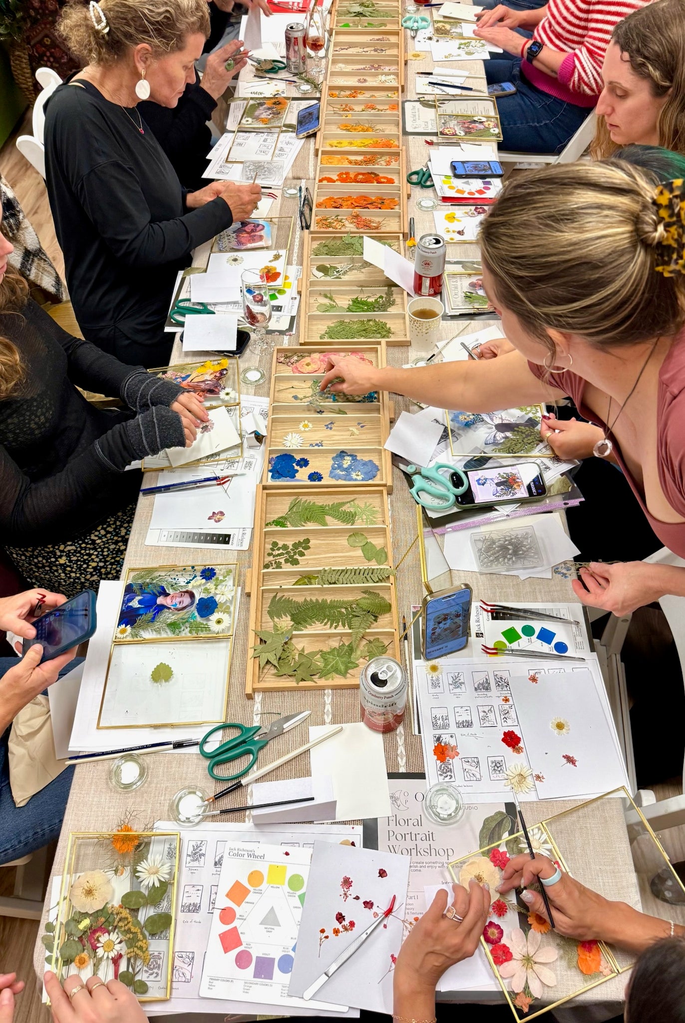 Our pressed floral classes are nurturing, inspiring and fun. Take a break, learn something new, spend time with friends and take home a beautiful piece of floral art, created just by you.