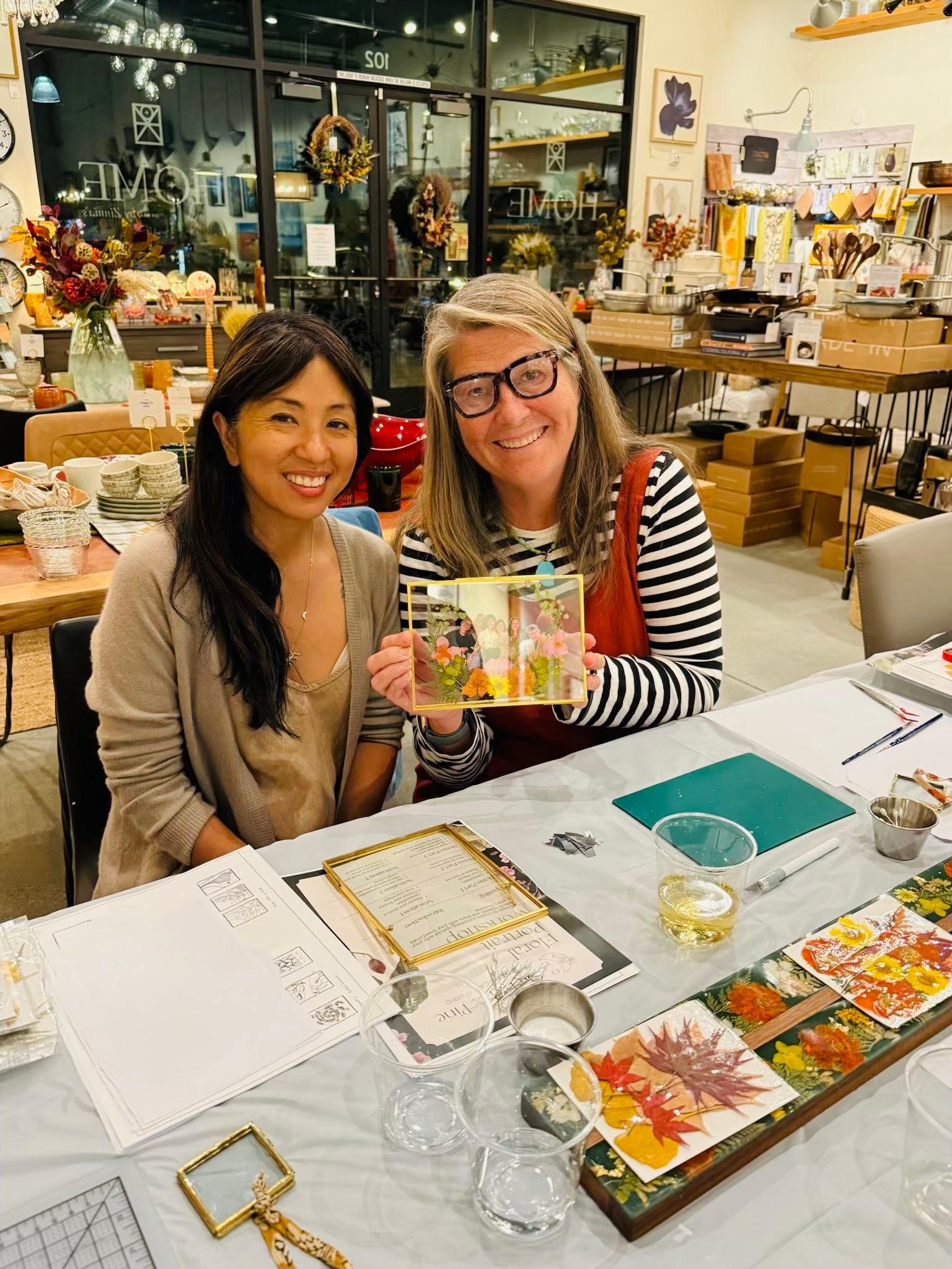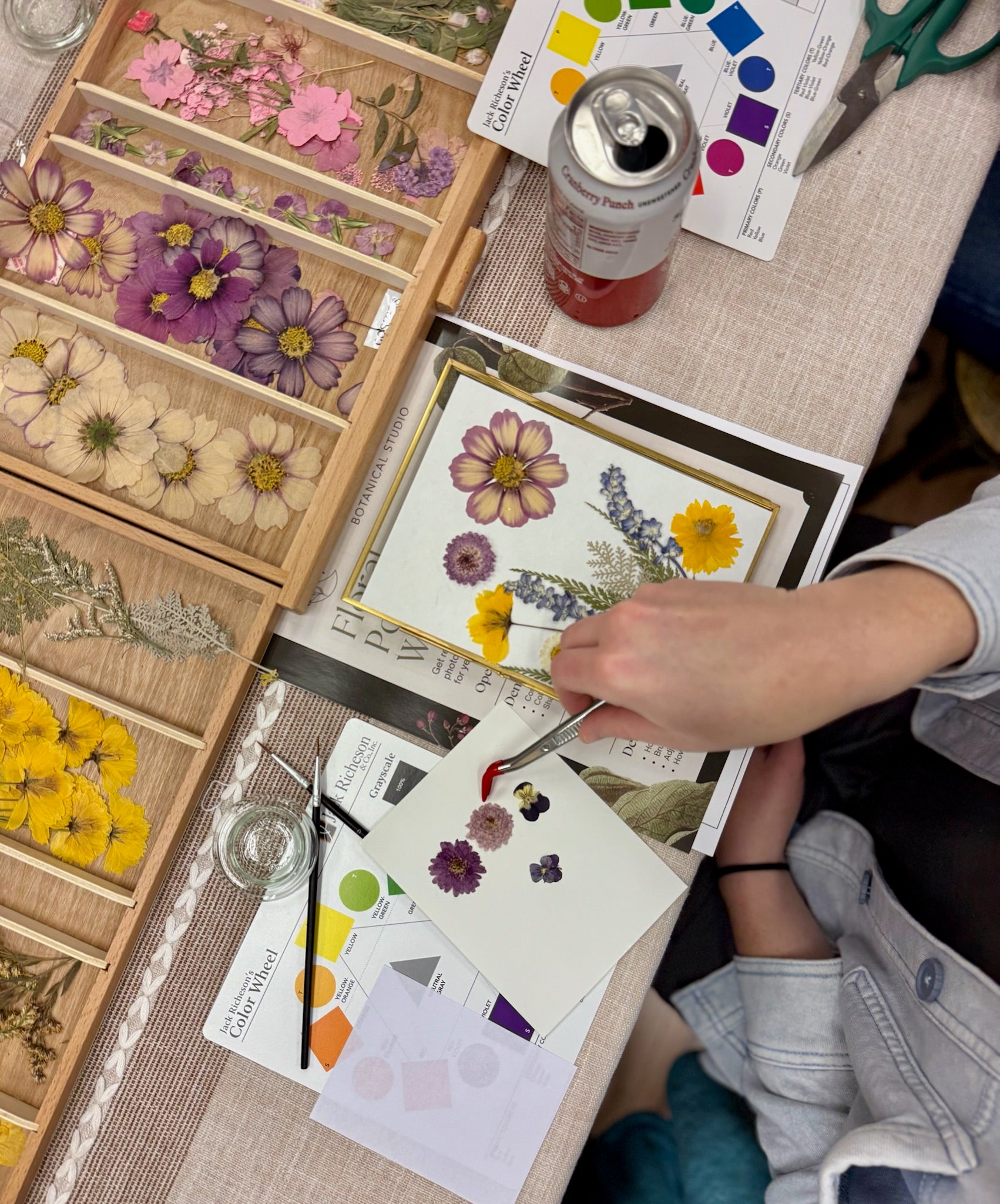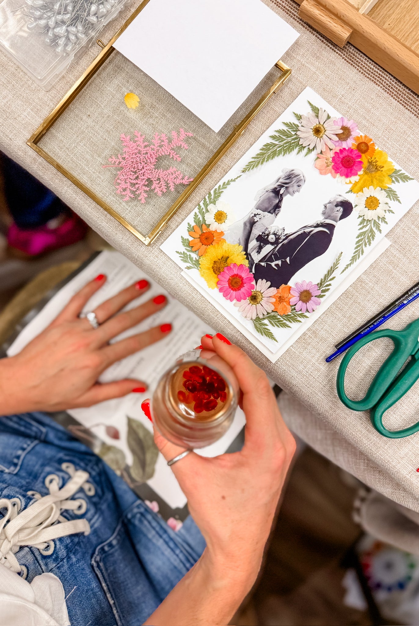 Our pressed floral classes are nurturing, inspiring and fun. Take a break, learn something new, spend time with friends and take home a beautiful piece of floral art, created just by you.